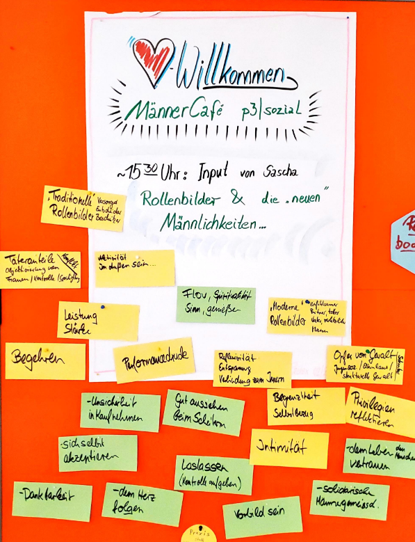 Sascha hat einen Input zu traditionellen und modernen Männern gegeben im gut gefüllten Männercafe. Männer-Sein hat viele Ambivalenzen in der heutigen Zeit, wie können wir den Drahtseilakt namens Leben bewältigen. Neben dem sensiblen Mann, der sich zurücknimmt, eine gute Verbindung zu einem Inneren hat, gibt es auch das Opfer von Gewalt, das im Außen, produktiv und leistungsfähig sein. Unsere Welt macht es nicht einfach, wir kommen nur voran im solidarischen Austausch, auch in Männergruppen, wenn wir darauf achten nicht wieder in klassische, toxische Muster zu verfallen. Dann klappt es auch mit den positiven Männlichkeit*en. Die balancierte Männlichkeit, in Selbstliebe und Achtsamkeit, im Cafe, mit anderen vielfältigen Männern, es war schön. Danke, sagt Sascha.
